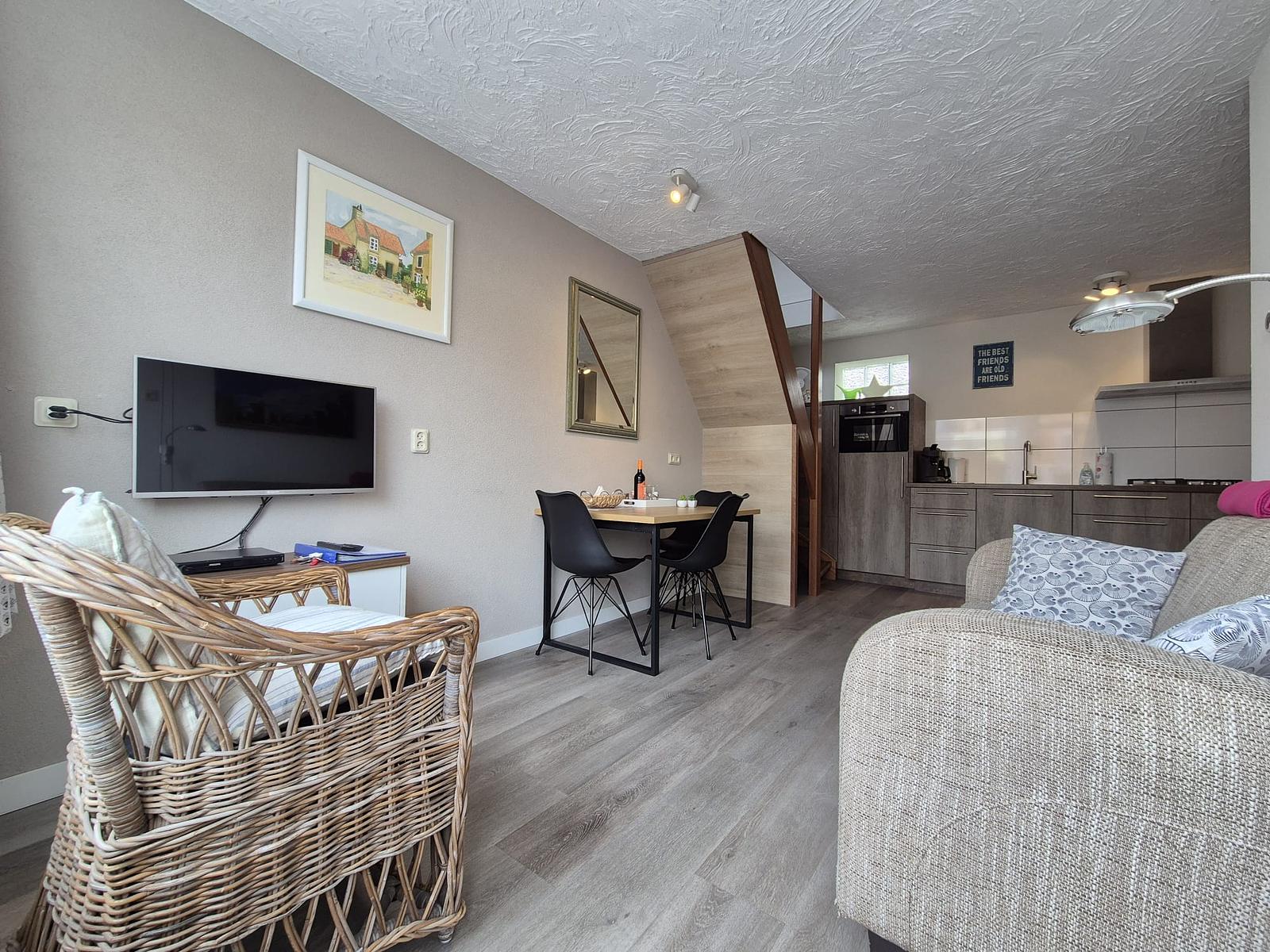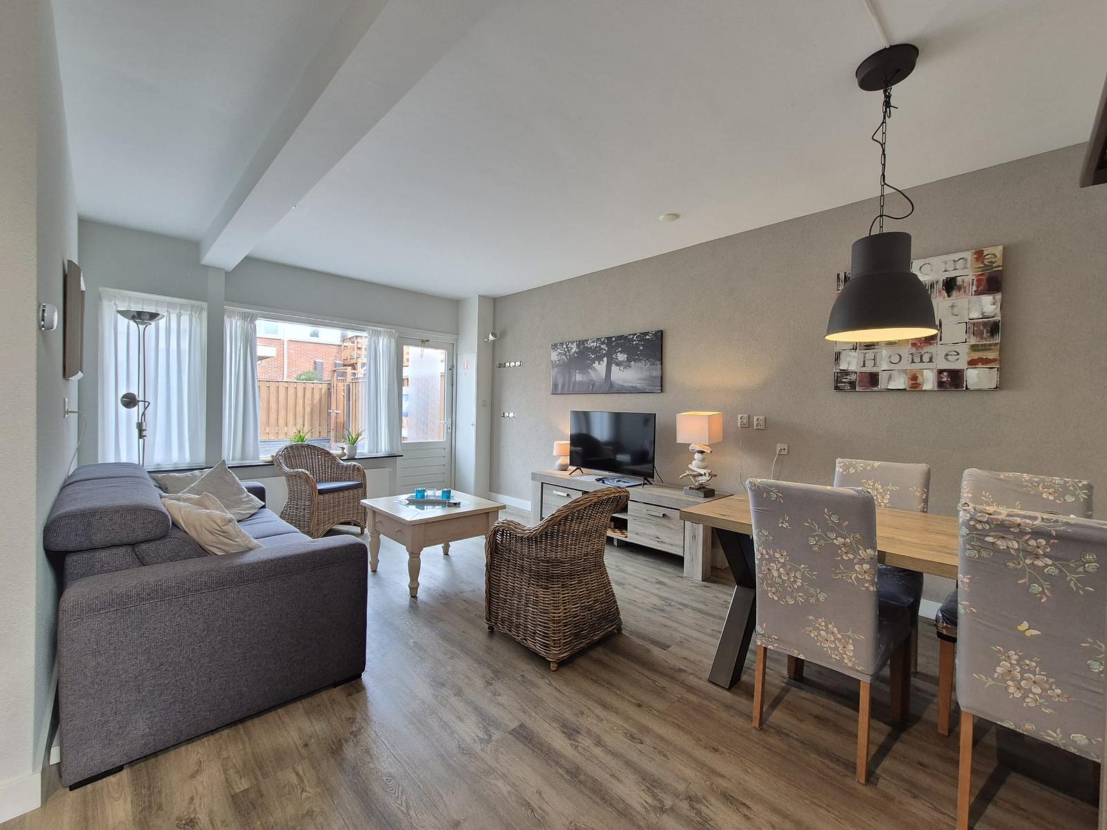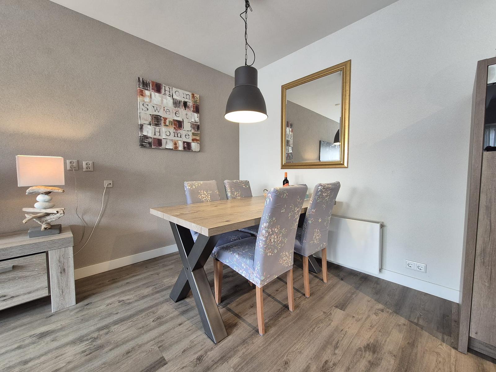 Genießen Sie Ruhe und Komfort in dieser Ferienwohnung: komplett ebenerdig, mit 2 Schlafzimmern, Badezimmer, Küche und großzügiger Terrasse.